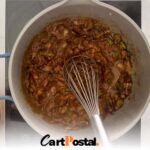 One of the easiest ways to protect your roux is to use warmed stock instead of cold. This prevents shocking the hot roux, helping the sauce stay silky and well‑blended.